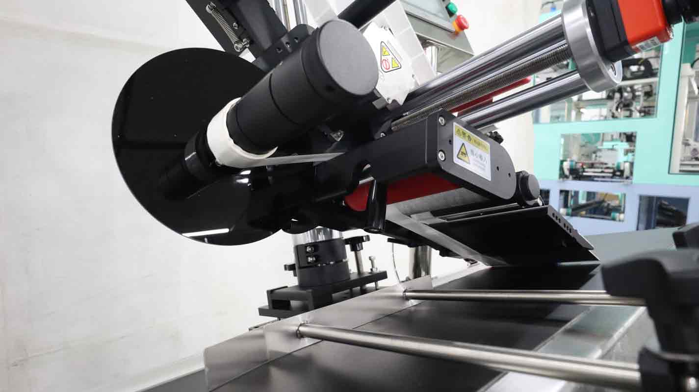 4.定位校準:使用治具固定卡片或PE袋樣本,手動調試貼標頭的高度、角度及前后位置,確保標簽與貼附面完全吻合。